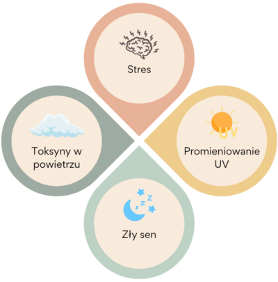 Stres, zły sen, toksyny w powietrzu, a nawet uszkodzenia powstające od promieniowania słonecznego – wszystkie te rzeczy przyspieszają pierwotną przyczynę starzenia, ale nie są faktycznym problemem.